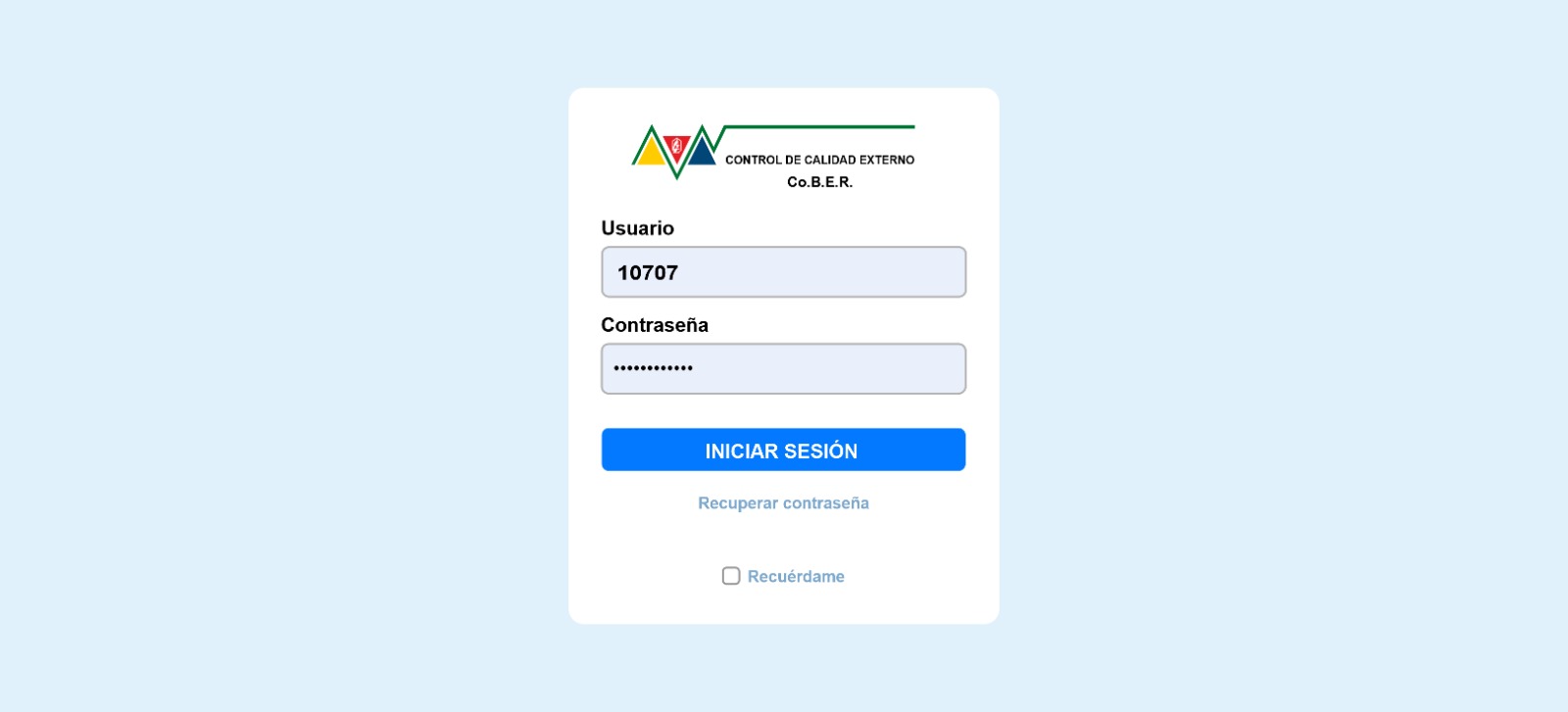 Para acceder al mismo se deberá ingresar desde nuestra página Institucional www.biocober.com.ar a través de los accesos ubicados en la misma para CONTROL DE CALIDAD EXTERNO (Accesos a Sistemas o Banner).